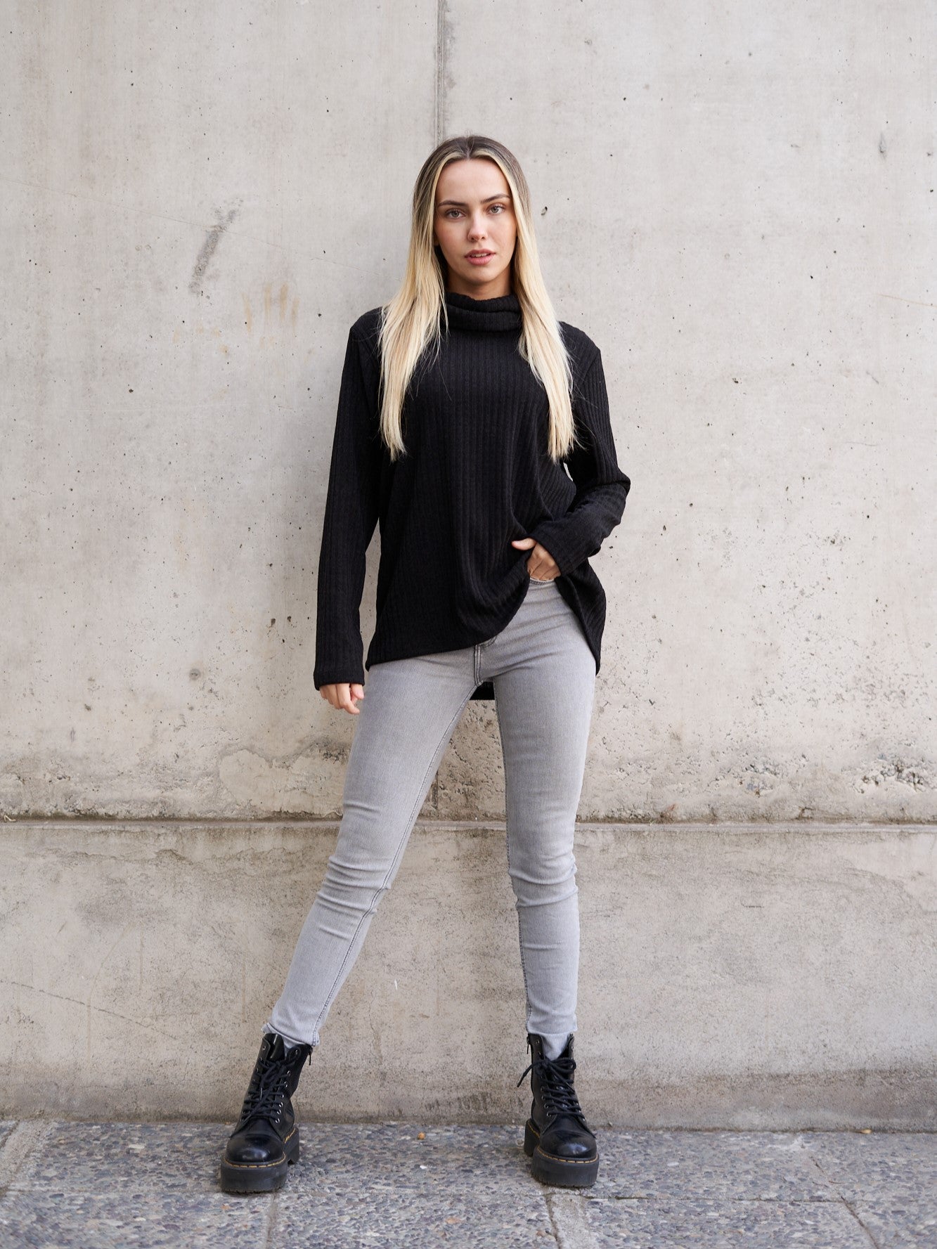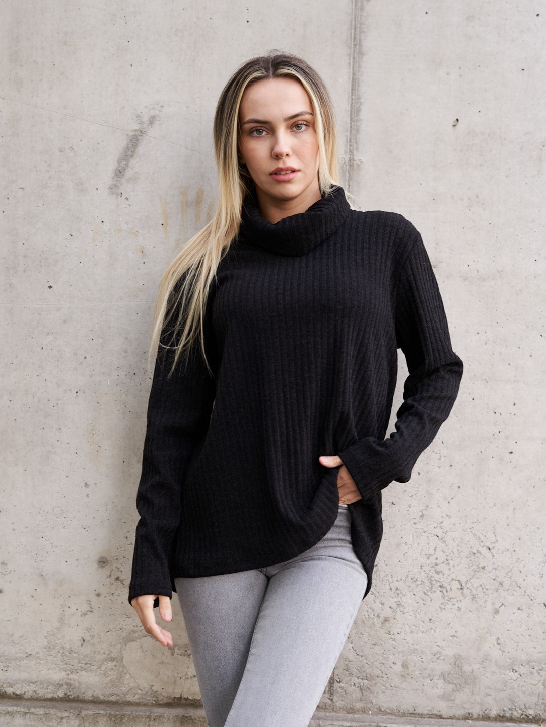 ¡Este beatle no te quedará ni apretado ni corto! La idea es que te sientas lo más comoda posible para estos días de frio. Como es largo, lo puedes usar adentro o afuera del pantalón y si lo usas fuera, la parte de atrás es un poco más larga que adelante. Su cuello cae, para que no lo sientas apretado.